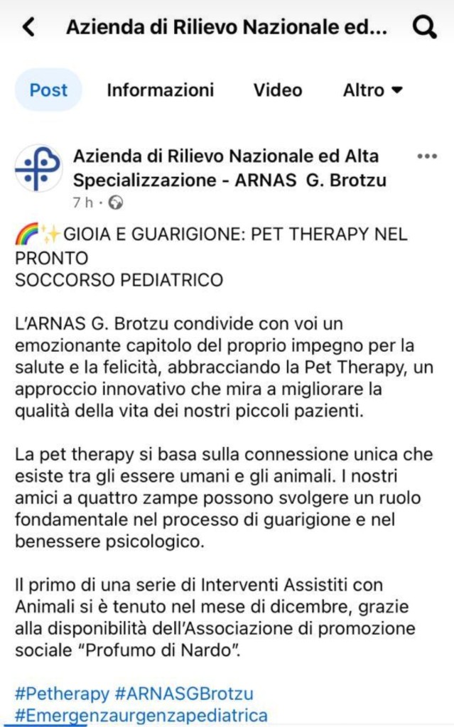 Al pronto soccorso pediatrico di cagliari arriva il cane Sam