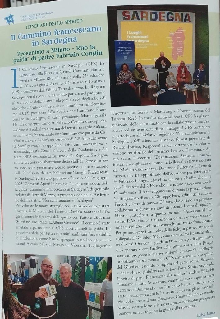 – la presentazione della 4ª edizione dell’iniziativa “Noi camminiamo in Sardegna”, a cui partecipiamo con il Cammino Francescano.