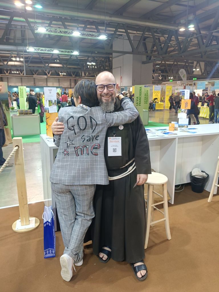 Per questo l’abbiamo invitato allo stand della Regione Sardegna ed a partecipare al Cammino Francescano in Sardegna mostrandogli la guida.