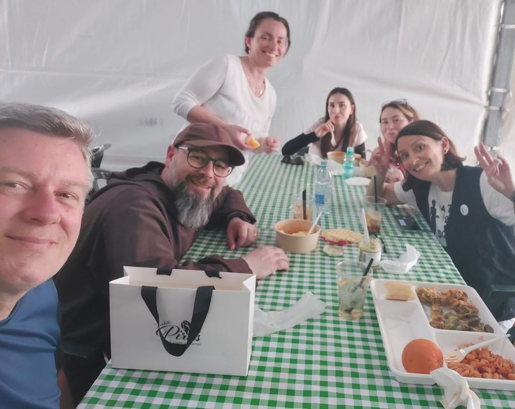 La Sagra del carciofo con i suoi stand curatissimi e originali ci ha permesso di continuare a stare insieme anche per la pausa pranzo, tra assaggi a base di delizie di carciofo e musica, in un clima familiare.