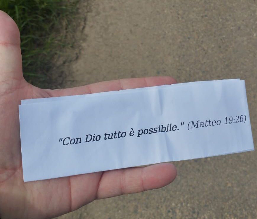 È stata una pausa davvero ristoratrice per l’anima e per il corpo, con la lettura di una Parola della Scrittura donata in un bigliettino personale da meditare lungo il resto del cammino.