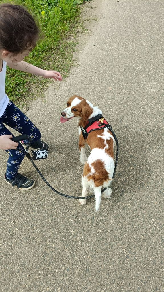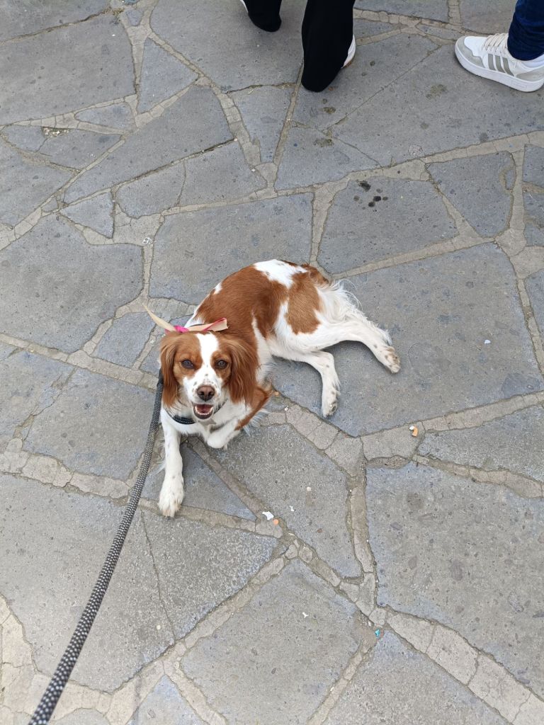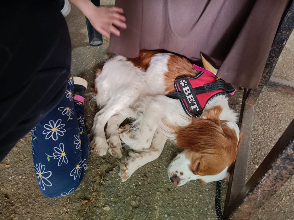 La nostra cagnolina è stata coccolata con dei momenti di ristoro, con acqua fresca e tanti premietti gustosi e passeggiate a guinzaglio con Marianna.