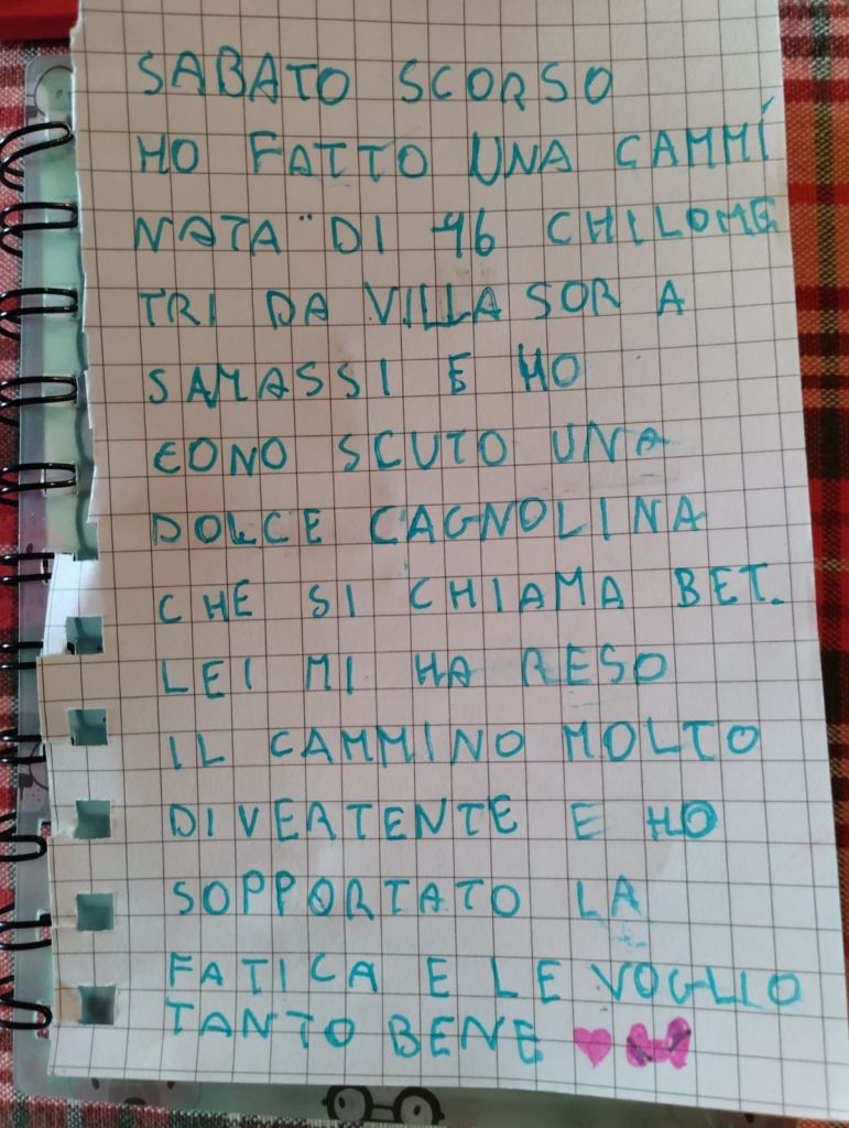 Per noi dell’Associazione ritrovarci con alcuni degli amici del Cammino di Noi camminiamo in Sardegna è stata una festa, ma è stato altrettanto speciale accogliere chi era alla prima esperienza, come per la nostra amica più piccola, Marianna di 7 anni che con la sua famiglia, a ritmo di zampa con Bet, è riuscita a percorrere il tragitto con tanta allegria.