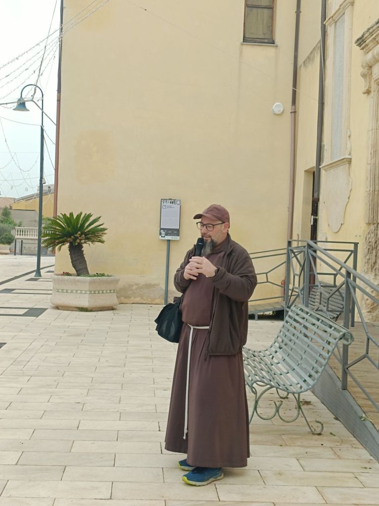 Padre Fabrizio ha donato una benedizione a tutti i pellegrini prima della partenza, dopo una lettura della Parola e una meditazione, ci ha invitati a camminare custodendo, almeno per la prima ora del percorso, una pace del cuore, evitando distrazioni per godere appieno la quiete della natura circostante.