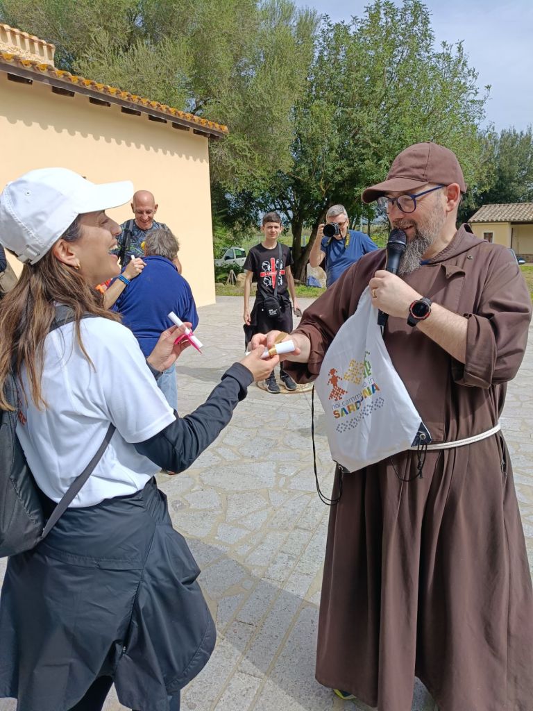 Siamo stati accolti dalla Sindaca Beatrice Muscas che assieme alla presidente della Fondazione del Cammino Francescano in Sardegna, Maria Ignazia Deidda e Carlo Curreli, ci hanno consegnato la spilla del Cammino.