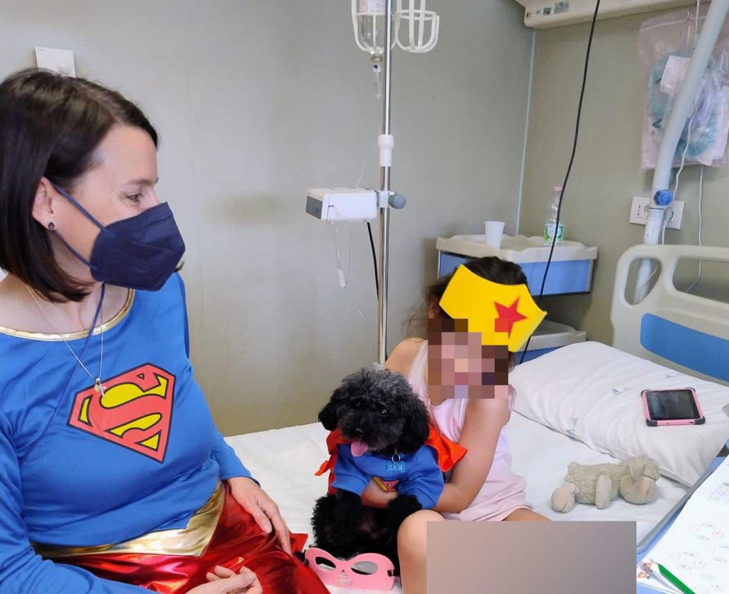 Per questo, SuperSam, nonostante fosse molto impegnato al mattino nel progetto di pet therapy al Pronto Soccorso Pediatrico del Brotzu di Cagliari, con l’aiuto di alcune bambine del reparto si è vestito da SuperDog ed è volato tra le braccia di nuovi bambini per portare una zampa amica e tante coccole.