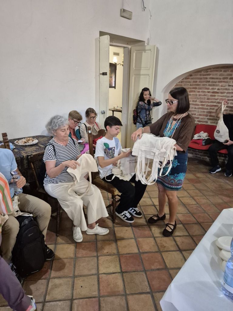 La Fondazione ha regalato a tutti i partecipanti la shopper dell’iniziativa contenente la spilla dei Conventi Aperti, il segnalibro, il libretto turistico del comune di Iglesias.