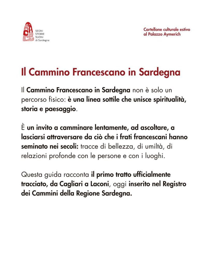L’Associazione come Amici del Cammino Francescano in Sardegna, parteciperà alla presentazione della Guida che si terrà