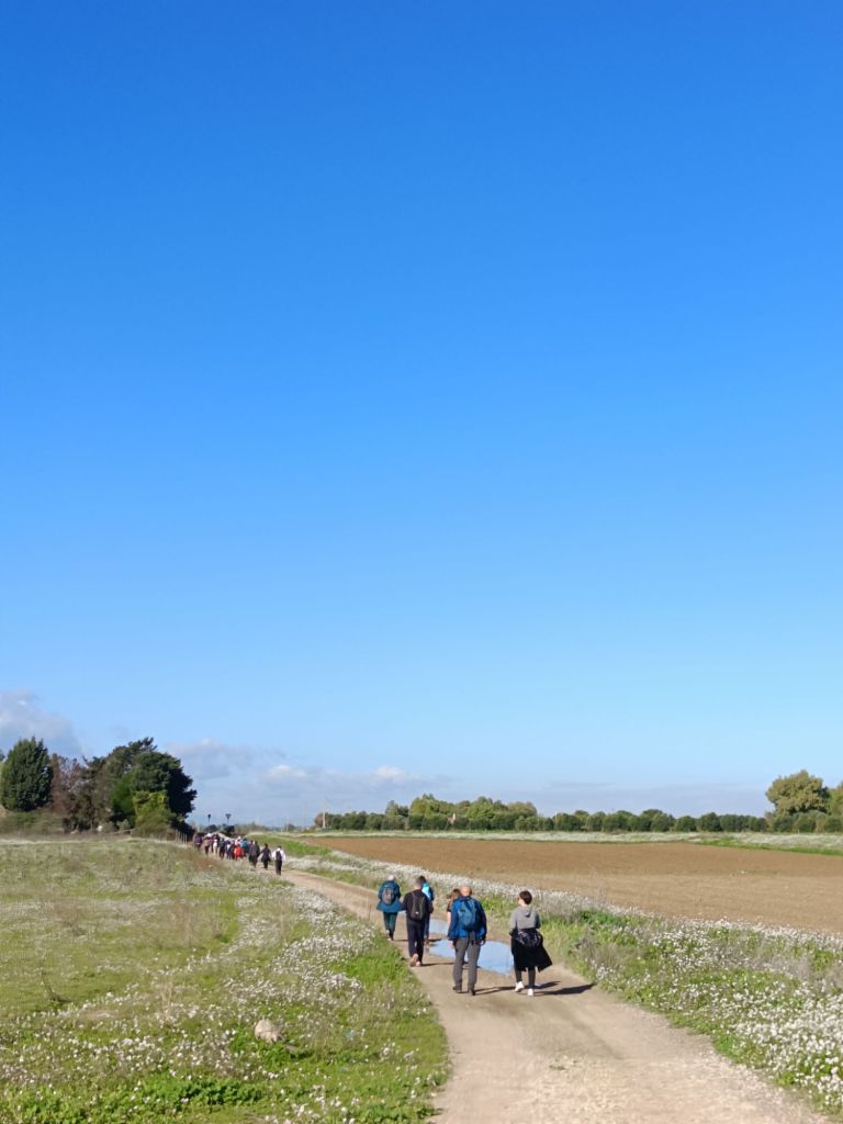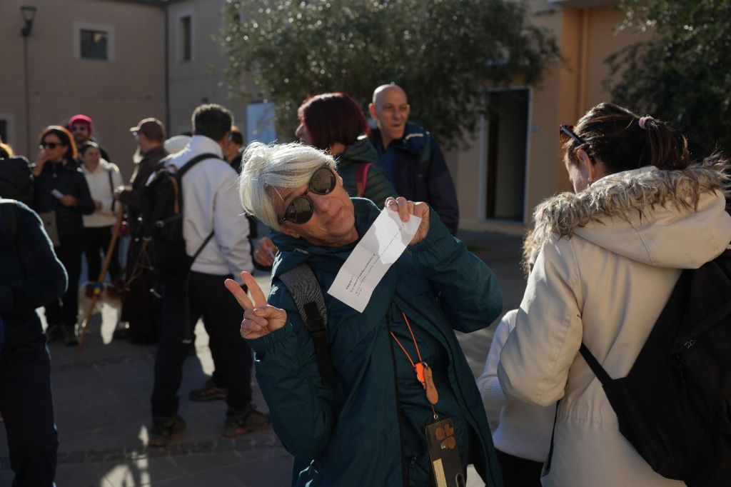 La guida esperta, Annamaria Murru, non perdeva di vista nessun camminatore e, insieme a Fr. Fabrizio, ha saputo tenere unito un gruppo numeroso, con diversi camminatori alla prima loro esperienza.