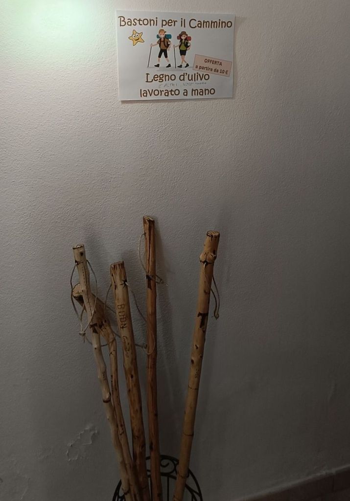 In particolare i bastoni per il Cammino, essendo il monastero il punto di partenza della prima tappa del Cammino di Santa Barbara.