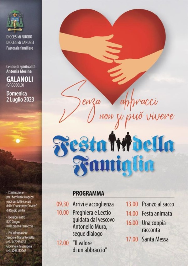 Domenica 2 luglio si è tenuta nel Centro di Spiritualità Antonia Mesina di Galanoli (Orgosolo) la Festa della Famiglia interdiocesana (Diocesi di Nuoro e Lanusei). La giornata è stata intensa con la partecipazione del Vescovo Antonello Mura che ha aperto l'incontro con una Lectio Divina sul brano evangelico Lc 7,36-50 e la conclusione alle ore... Continua a leggere →